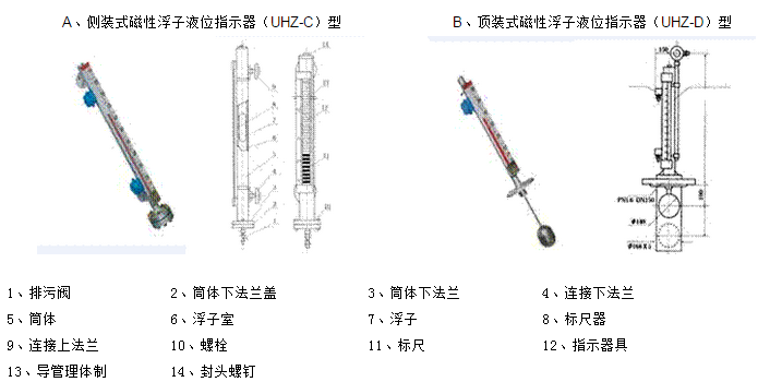磁性浮子液位計(jì)材質(zhì) :產(chǎn)品名稱 | 測裝式指示器 | 頂裝式指示器 |